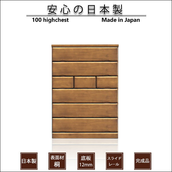 チェスト 幅100cm 6段 ハイチェスト 桐 きり 木製 タンス 洋服たんす 洋服タンス 国産 日本製 おしゃれ 衣類収納 整理たんす 整理タンス 桐たんす 桐箪笥 収納棚 和室 洋室 スライドレール付き 新生活 衣替え 完成品 送料無料 通販 激安