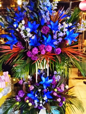 スタンド花 2段 青 開店 祝い 御祝 誕生日 記念 式典 発表会 舞台 オープン 新装開店 開業 開院 開所 移転 栄転 受章 就任 演劇 公演 コンクール 新規オープン 周年 送料無料 花 st048