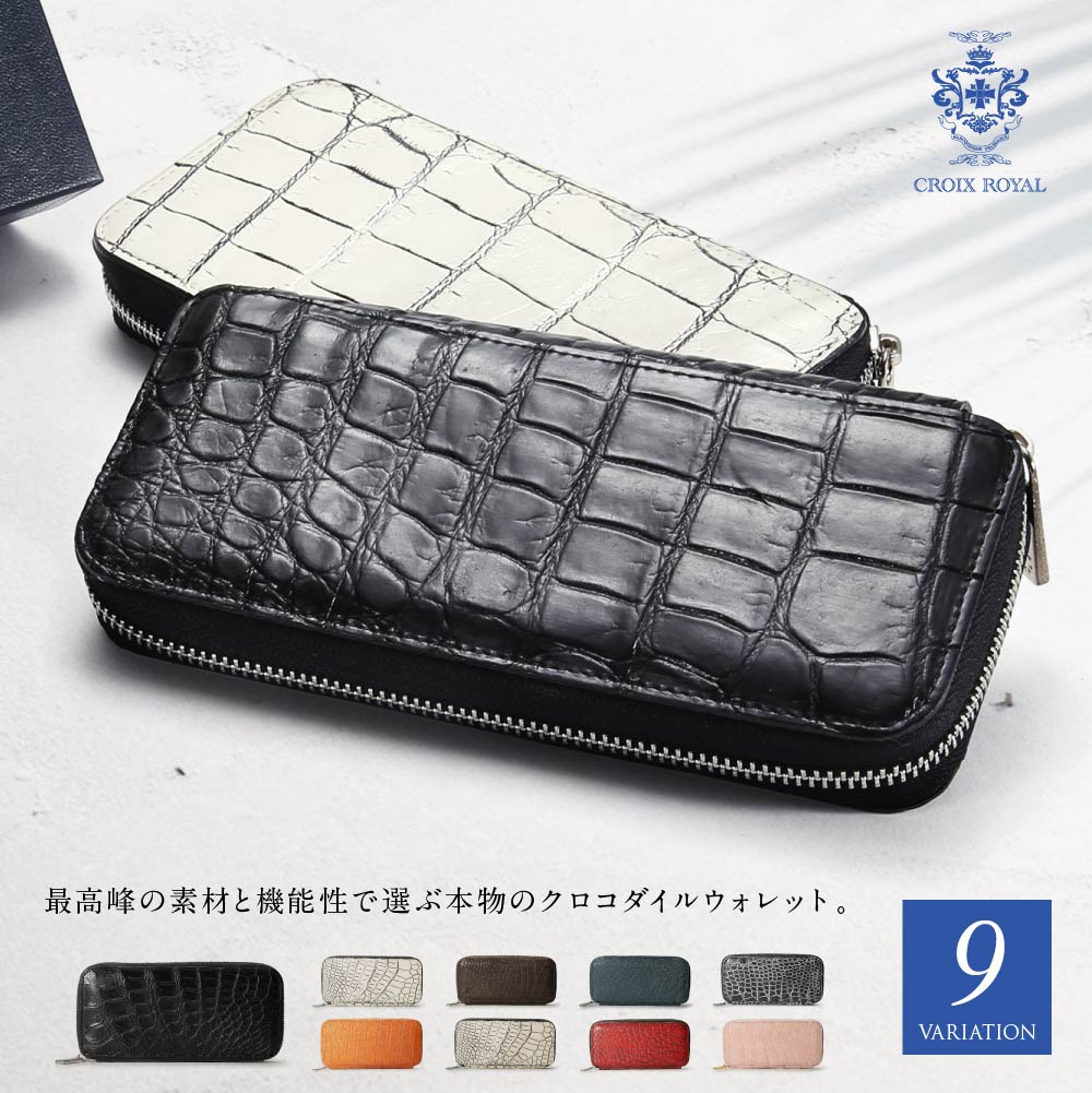 クロワ・ロワイアル CROIX ROYAL レディース 財布 長財布 - ラウンドファスナー本革 クロコダイル 本クロコ ウォレット さいふ サイフ