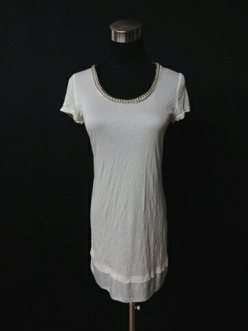 ピンキー&ダイアン ピンダイ PINKY&DIANNE チェーン装飾 ワンピース 半袖 切替 サイズ38 白×シルバー △4 レディース 【中古】【ベクトル 古着】 180506 ベクトル マークスラッシュ