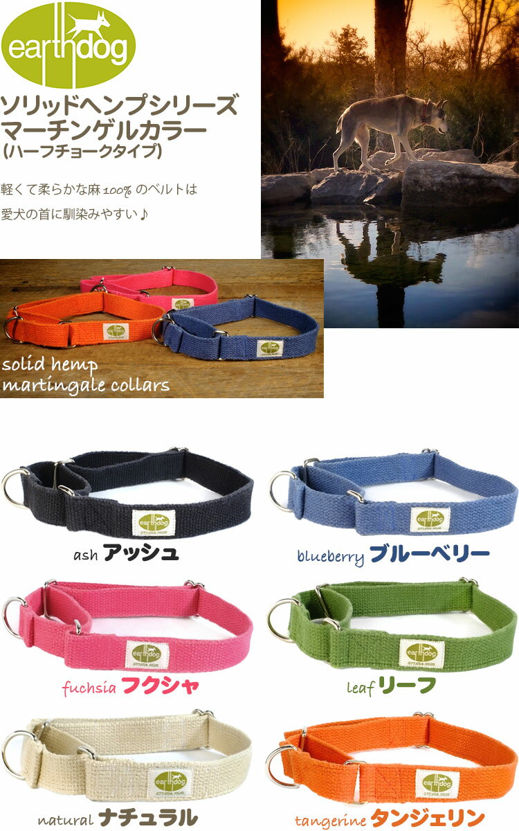 アースドッグ ソリッドヘンプ マーチンゲルカラー Mサイズ 2.5cm幅 【Earth Dog 首輪 ハーフチョークカラー 天然素材 麻 敏感肌 USA直輸入】