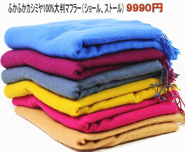 カシミヤ100%手織り パシュミナ 大判 マフラーショール 【2】195cm×50cmエアーカシミヤ 大判ストール【カシミヤ、カシミア ストール】特別セール