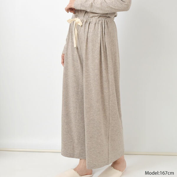 プリスティン オーガニックコットン&ヤク ギャザーパンツ グレー M | オーガニック コットン 敏感肌 レディース 女性 ボトムス ロング丈 おしゃれ 綿 きれいめ 無地 シンプル あったか リラックスウエア 癒し